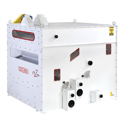 The Chamber CFR-6000 and 7000, contains a screw conveyor made in Stainless Steel to distribute the inlet of product into the chamber and it separates them in three different products: Cargo Rice, Paddy Rice and Husk.